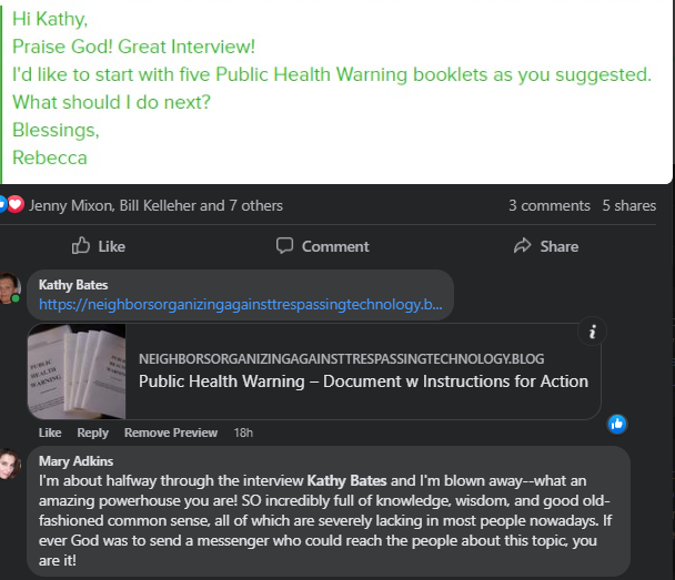 https://NoATT.blogand specifically you need to read through this document GOD INSISTED I create recently so you’ll understand where we are in this story so you’ll understand the need to take some steps of action, maybe even reach out and say, “Hey Kathy. Sorry we’re late to the show. How can we help you?”