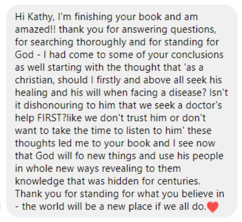 What a blessing to get this kind of message and see the book helping people learn to heal themselves and the one’s they love!