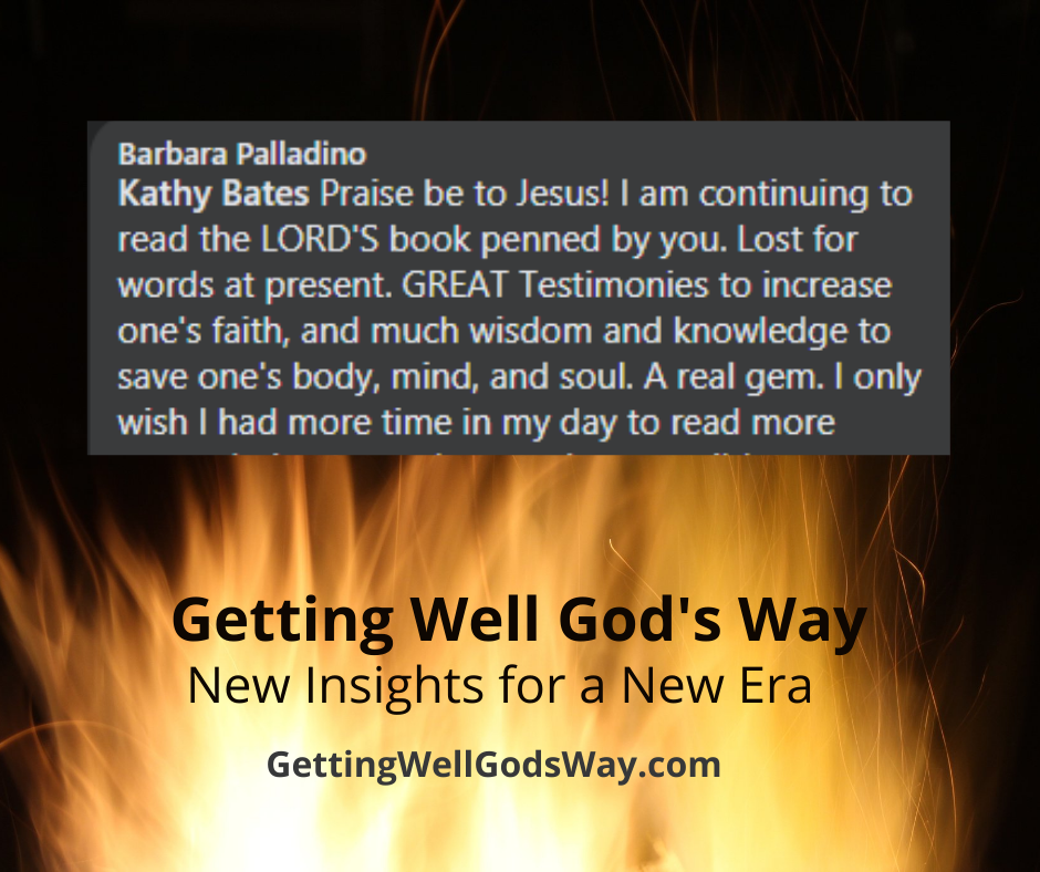 I’m always honored when someone blazes through this “dense and intense” book and this reader did just that in a few weeks. This is a portion of the comment he sent me on his reading of the Getting Well God’s Way book. I have to admit that it was very moving that this man sees what I see, “a lot of lost souls” and many of them will be professing Christians who didn’t see what they needed to see….WHAT GOD SEES, about the way we live AS WE proclaim to know Him. The evidence presented through this informational lived-out story says most professing Christians do not know Him. The horror of Matthew 7: 21 et seq. rings in my mind…”Not all who say ‘Lord Lord’ will enter the kingdom but those who DO the will of the one who sent me.” From memory, it goes on to read, “But didn’t we do many miracles in your name and drive out demons and….” and Jesus replies “Depart from me, you who commit iniquity, (you who break God’s laws), I do not know you.” We desperately need to know what God thinks about the way we’re living. IT MATTERS, as this reader found out.