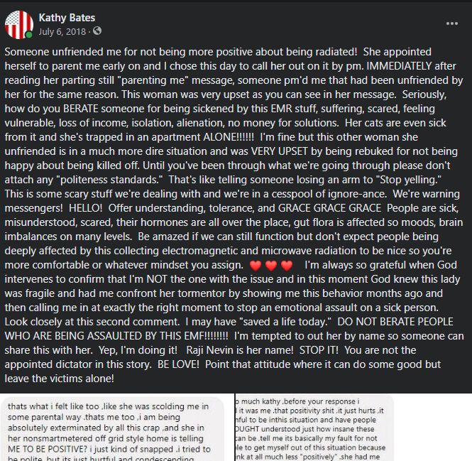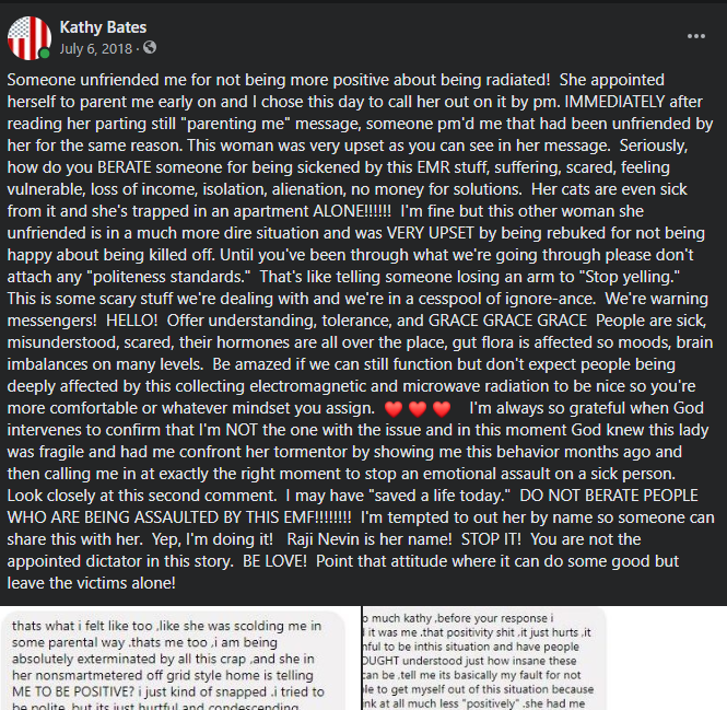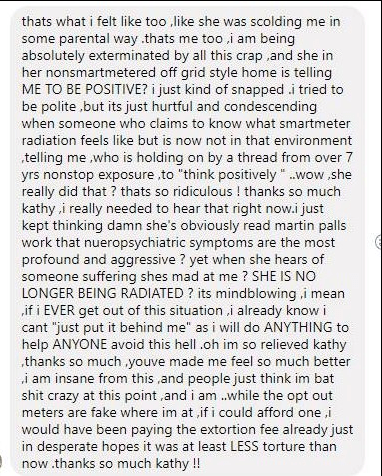 There are many of us suffering and sometimes some brew ha-ha breaks out online. One day a woman was fussing at me, telling me I should be “more positive”. Thankfully, my response helped someone else much more fragile and may have “saved a life today”. For reference, that’s like telling someone being subtly electrocuted to “be more positive”. These electromagnetic fields cause all kinds of physical symptoms and make you feel like you’re being subtly cooked from the inside. It can affect your brain, nervous system, heart rhythm, sleep, hormones, mood, immune system, and is accompanied by a sense of futility as more and more technology is rolled out. People who don’t yet feel it laugh, mock, and ridicule, mostly because they watched a Netflix series called, Better Call Saul, and have confused their media propoganda source with actual facts about chronic exposure to any form of radiation and there are many. Most of the wireless tech is in the microwave range and all that implies.